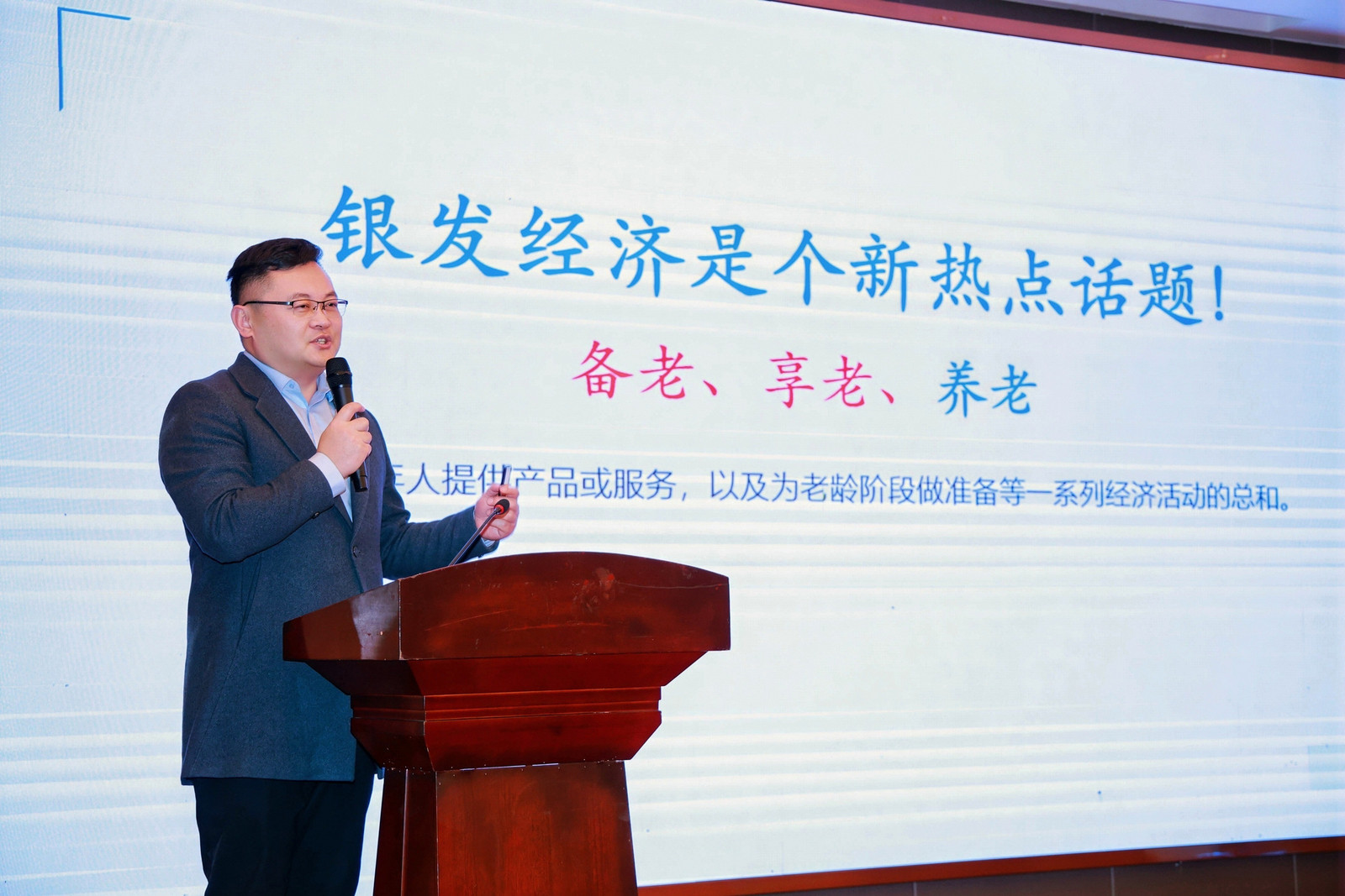 圍繞健康產(chǎn)業(yè)的宏觀趨勢,普澤健康產(chǎn)業(yè)集團總經(jīng)理鐘厚波先生隨后以《從養(yǎng)老到銀發(fā)經(jīng)濟的機遇與探索》為主題發(fā)表演講,分享了大健康背景下銀發(fā)經(jīng)濟的發(fā)展方向,并提出應(yīng)從產(chǎn)業(yè)鏈視角重新審視健康服務(wù)的細分與協(xié)同。