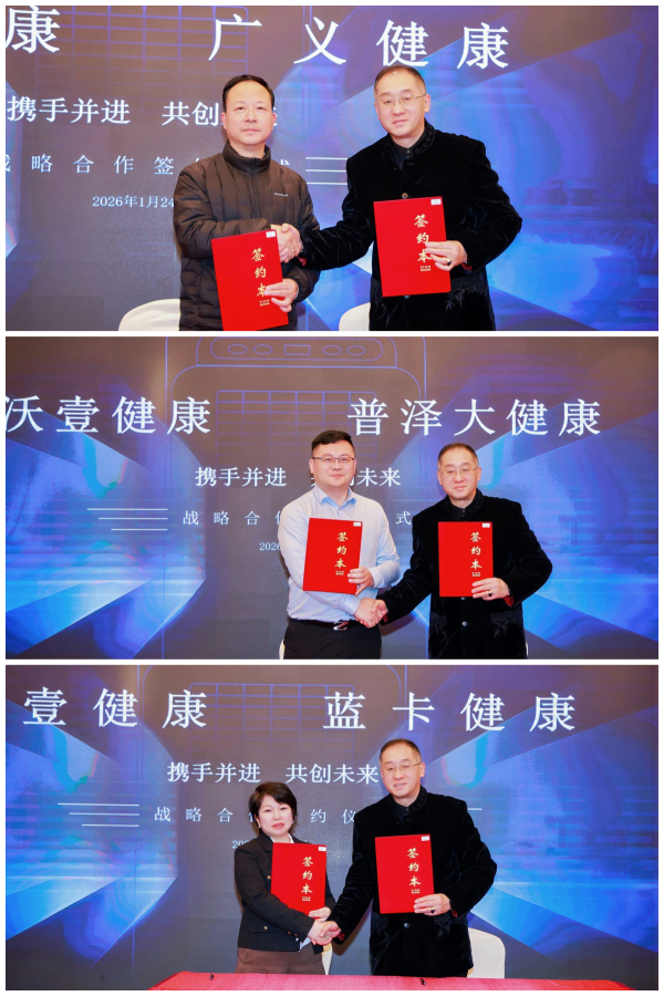 在多方共識的基礎(chǔ)上,發(fā)布會迎來意義重大的一刻?,F(xiàn)場,廣義健康集團、普澤健康產(chǎn)業(yè)集團、天津藍卡健康科技與沃壹健康圍繞MIS-30負離子治療儀未來市場的拓展簽署了戰(zhàn)略合作協(xié)議。各方將依托各自在健康管理服務(wù)、產(chǎn)業(yè)資源及智慧醫(yī)療平臺方面的優(yōu)勢,推動該醫(yī)療器械在家庭健康管理與醫(yī)養(yǎng)結(jié)合等場景中的規(guī)范化落地,進一步促進負離子醫(yī)療技術(shù)成果的轉(zhuǎn)化與推廣。